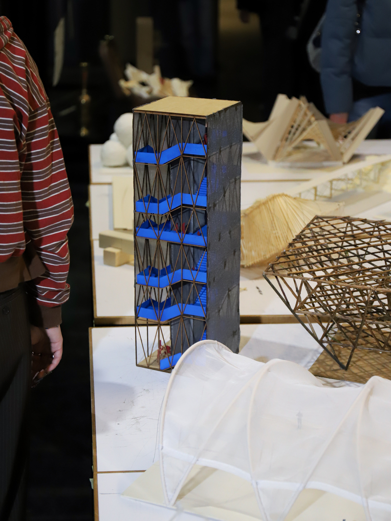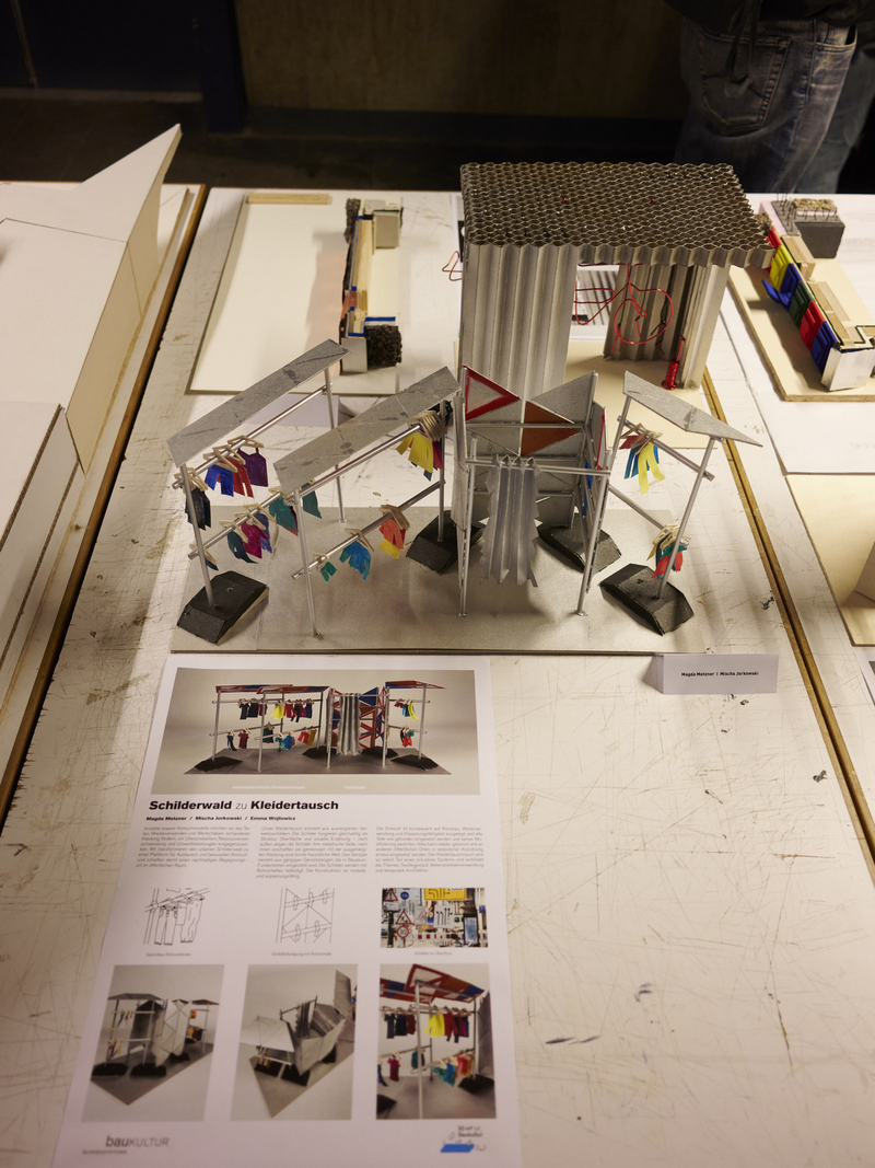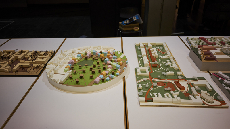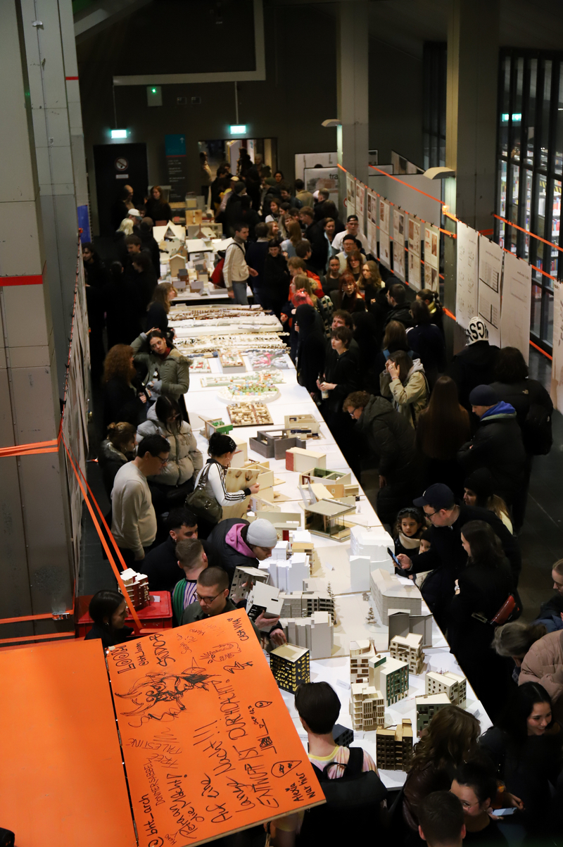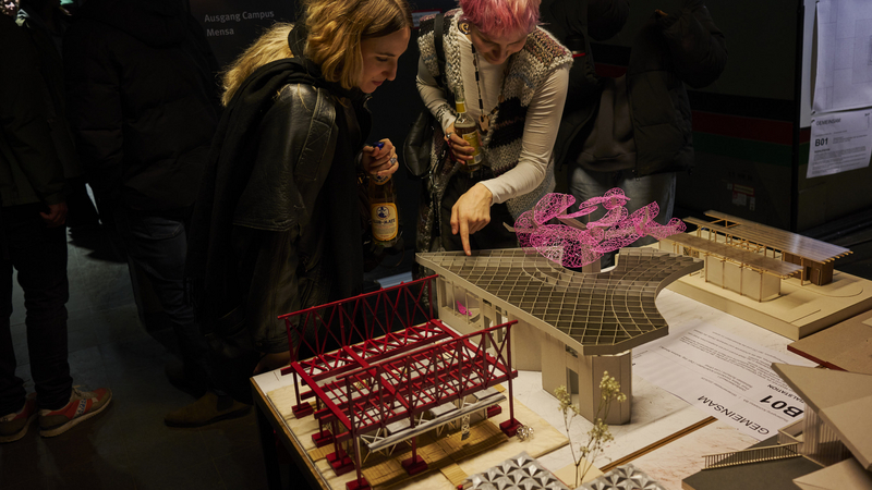 Zur großen Semesterausstellung hieß Prof. Rüdiger Ebel alle Gäste im Hörsaal H1 herzlich willkommen. Zum Auftakt der Werkschau hielten Jan Liesegang und Angela Ruiz Plaza aus Madrid (ETSAM) zwei spannende Impulsvorträge zum semesterübergreifenden Thema „Gemeinsam“.