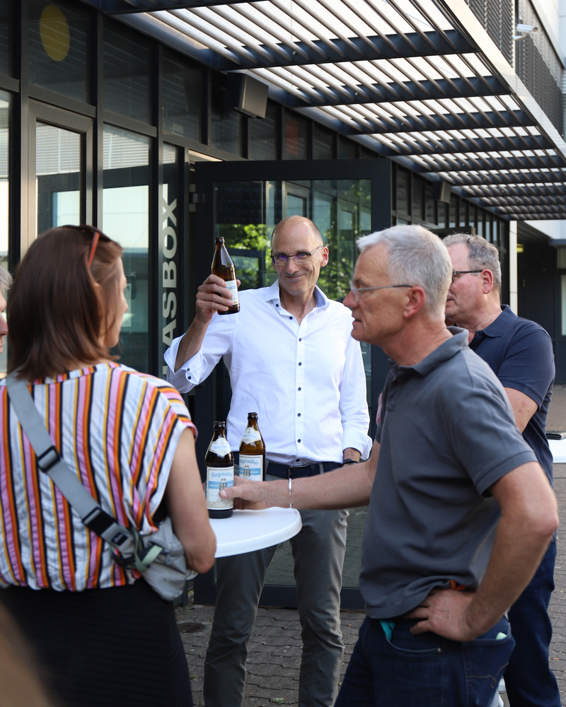 Beim Sommerfest des Fachbereichs IV wurden die Absolvent:innen herzlich von Dekan Prof. Patrick Jochum und Prodekan Prof. Lutz Dittmann empfangen. Auch der Vizepräsident für Forschung und Transfer der BHT, Herr Joachim Villwock, gab den Absolvent:innen noch einige nette Worte mit auf dem Weg.